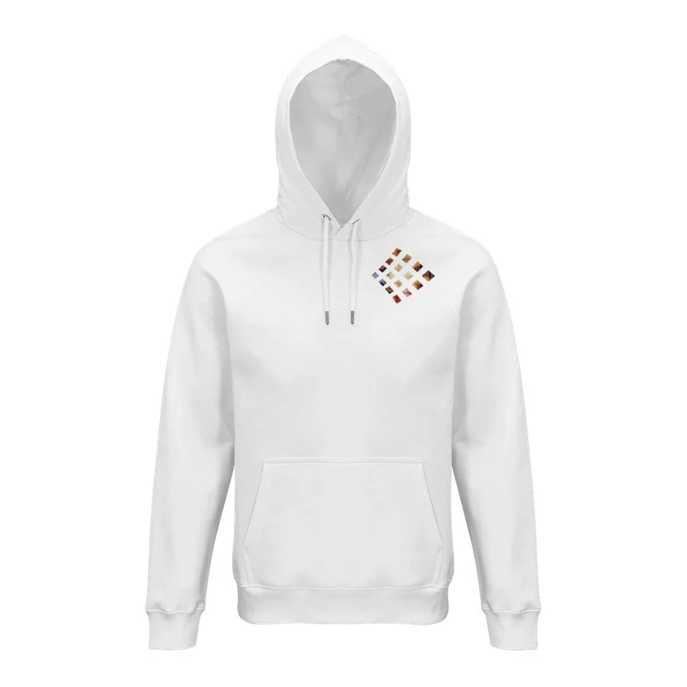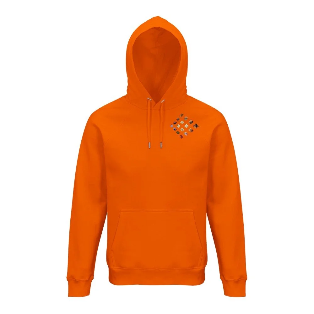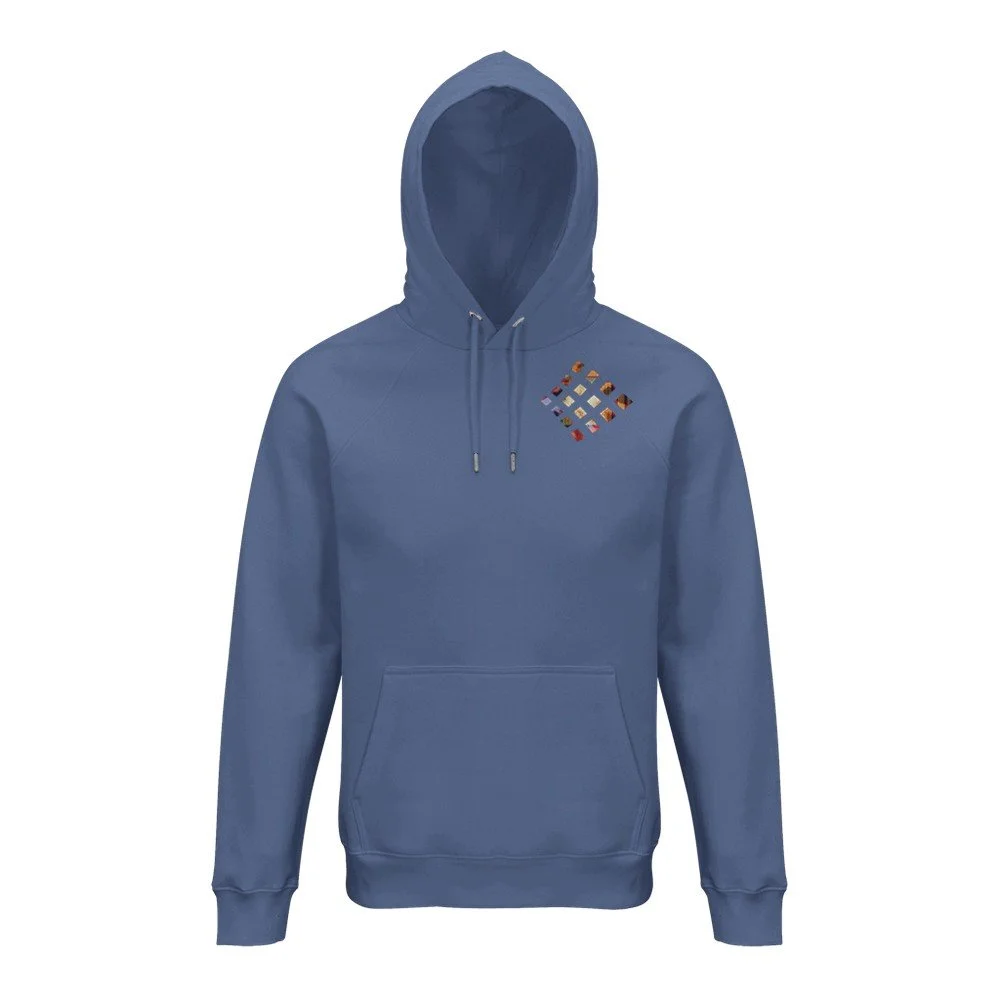 A sustainable and comfortable unisex hooded sweatshirt made from a blend of organically grown cotton and recycled polyester.