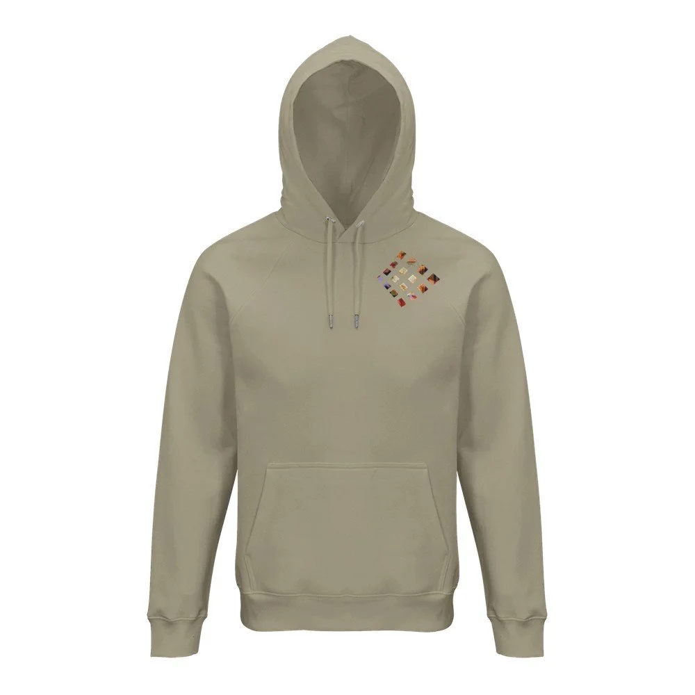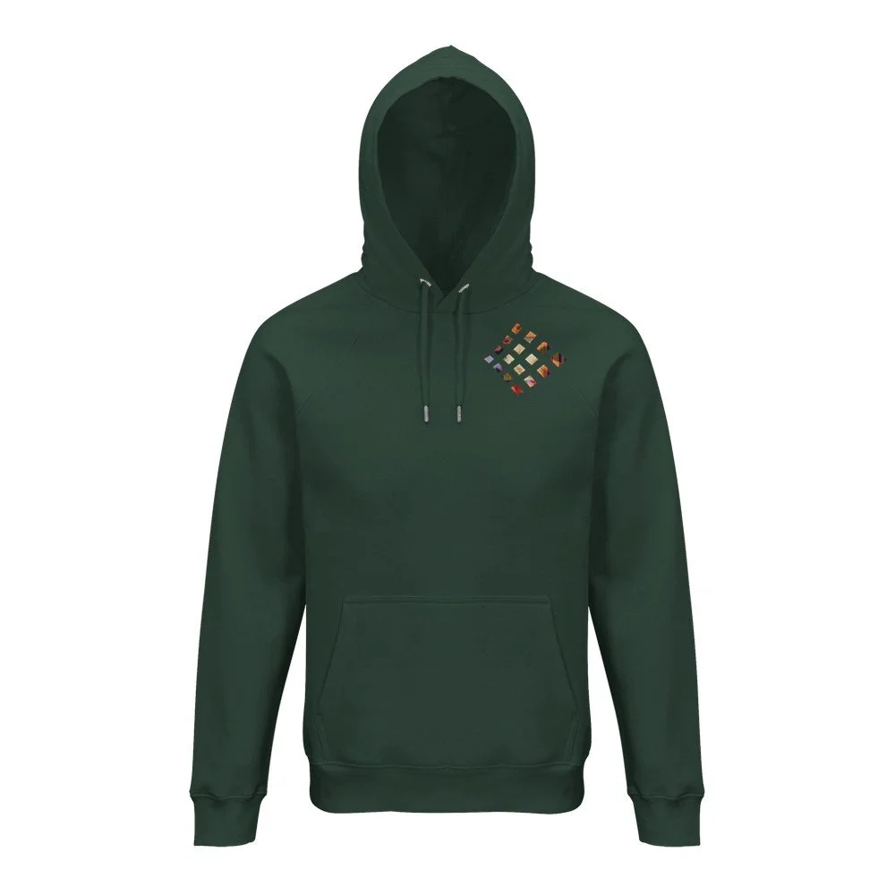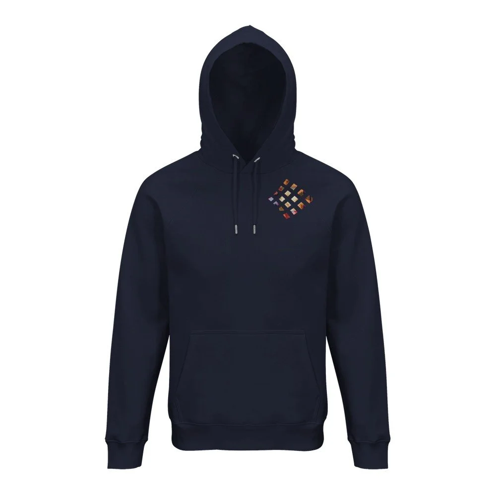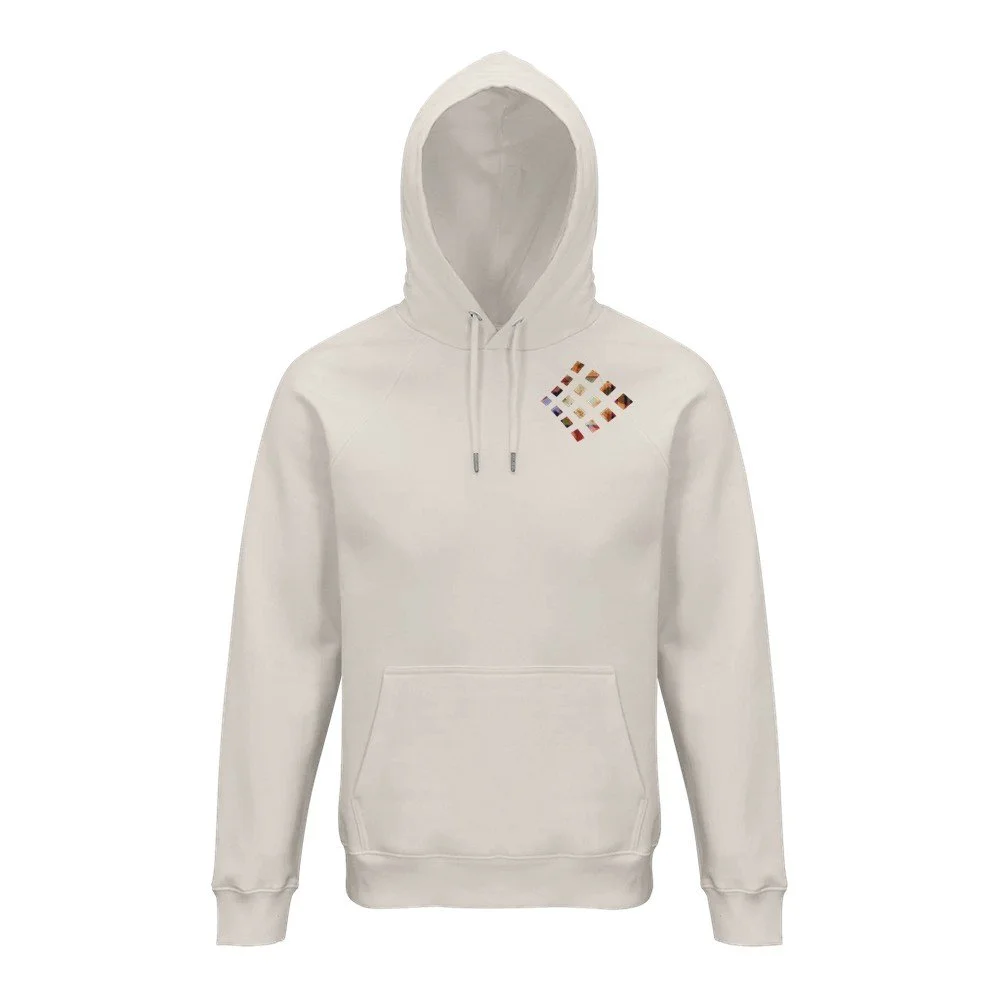 A sustainable and comfortable unisex hooded sweatshirt made from a blend of organically grown cotton and recycled polyester.